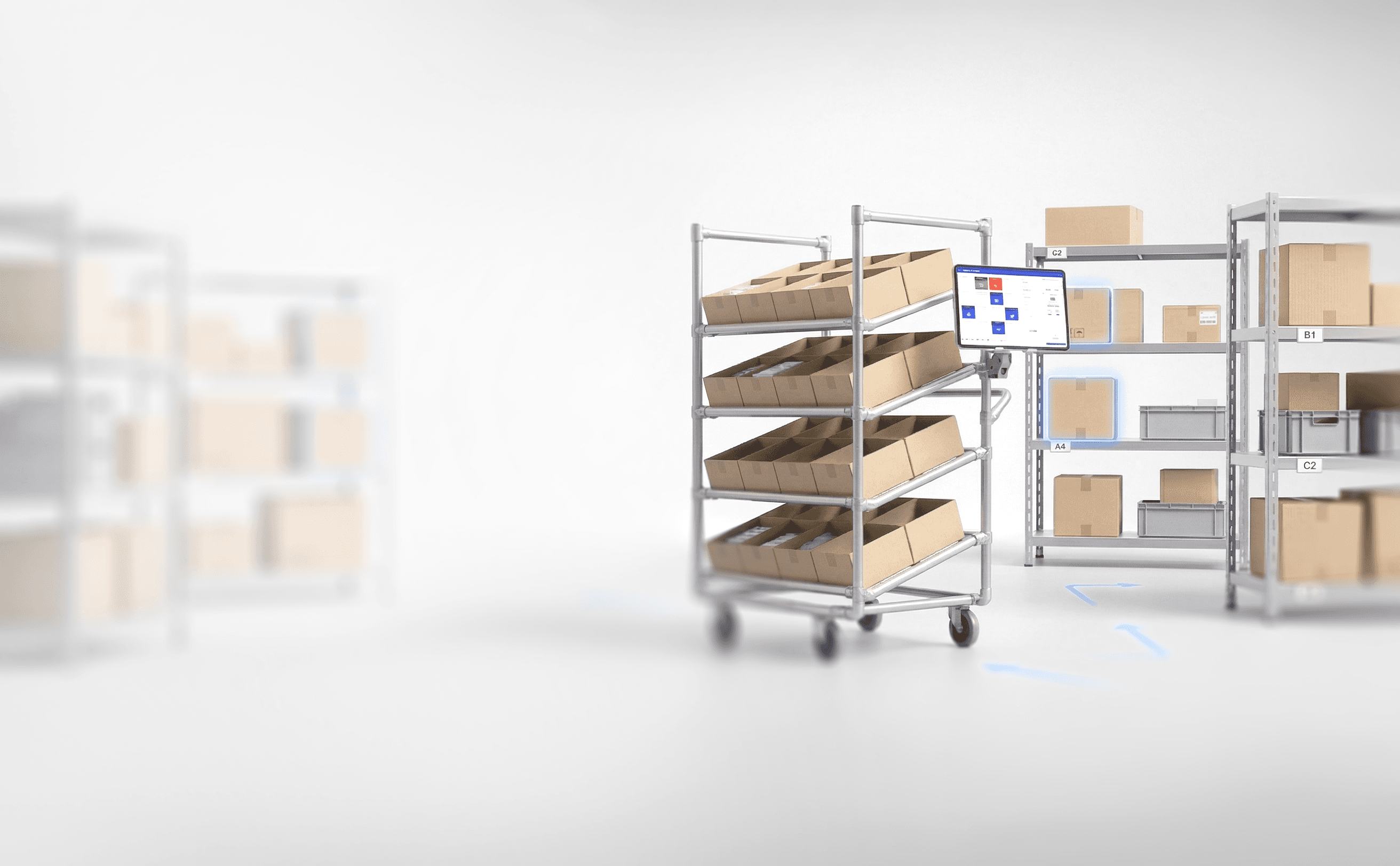 지금 사용 중인 랙, 피킹 카트, 작업대에 태블릿만 추가하면 됩니다.
